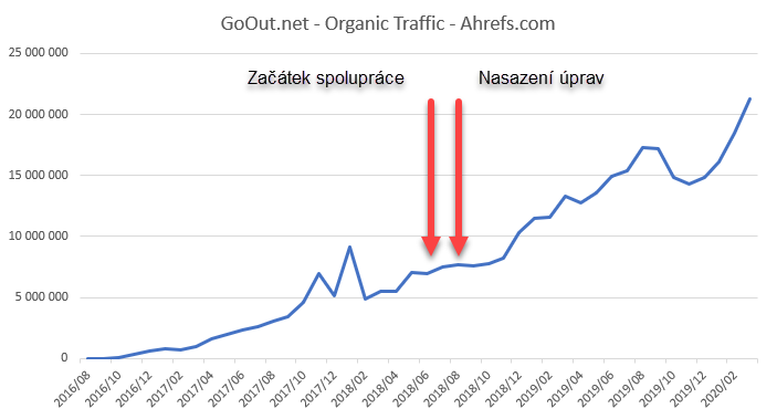 Realizace výše uvedených kroků spolu s technickými úpravami způsobila v poměrně krátkém nárůst organické návštěvnosti, která roste prakticky až doteď. Vedlejším efektem toho, že se nyní Goout umisťuje na názvy kulturních institucí a umělců na předních pozicích, je větší ochota Google rychleji indexovat nové události, což významně pomáhá jejich prodeji.