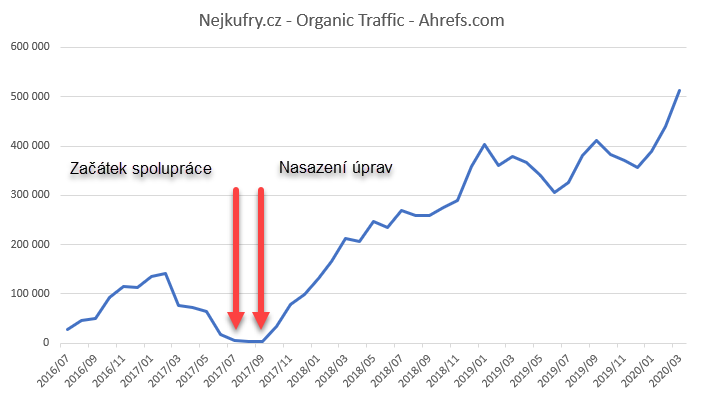 Po zapracování změn došlo prakticky okamžitě k nárůstu organické návštěvnosti a tento růst nadále trvá.